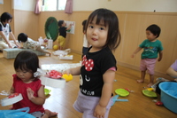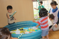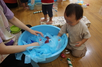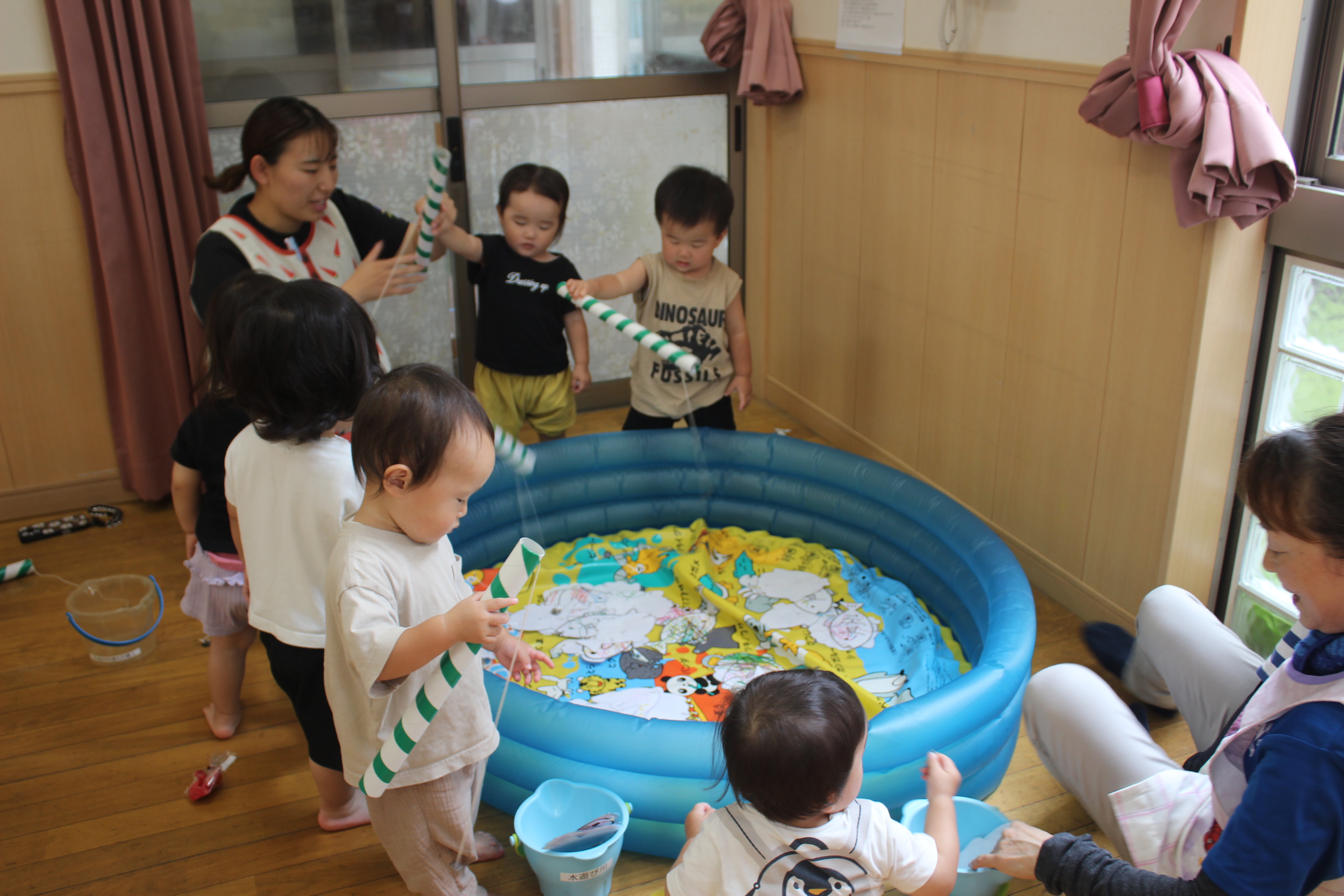 1歳児たんぽぽ組の子どもたちが夏祭り遊びをしました。