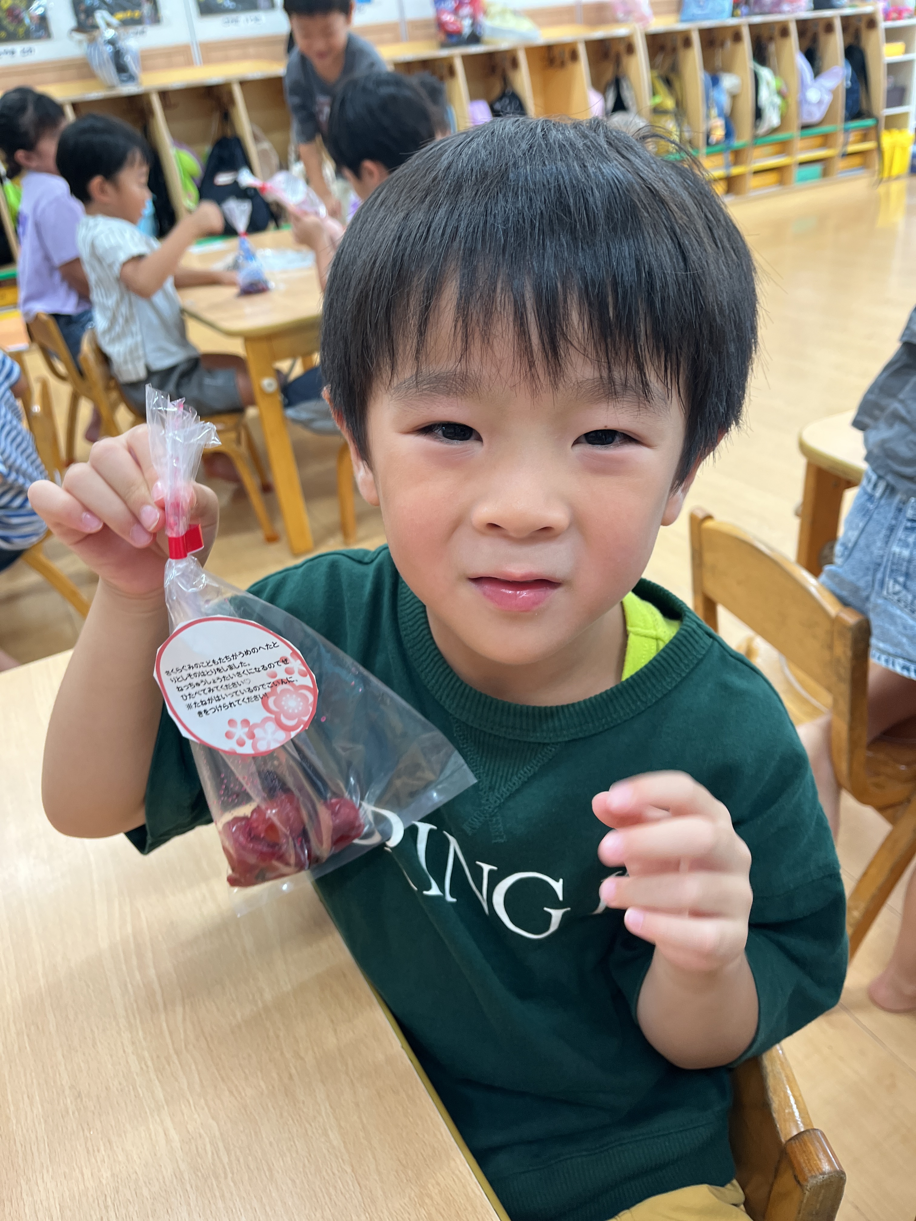 5歳児さくら組さんが作っていた梅干しが出来上がりました!
