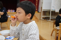 お泊り保育の朝、思い切って実食!→表情が曇ってしまいました。