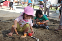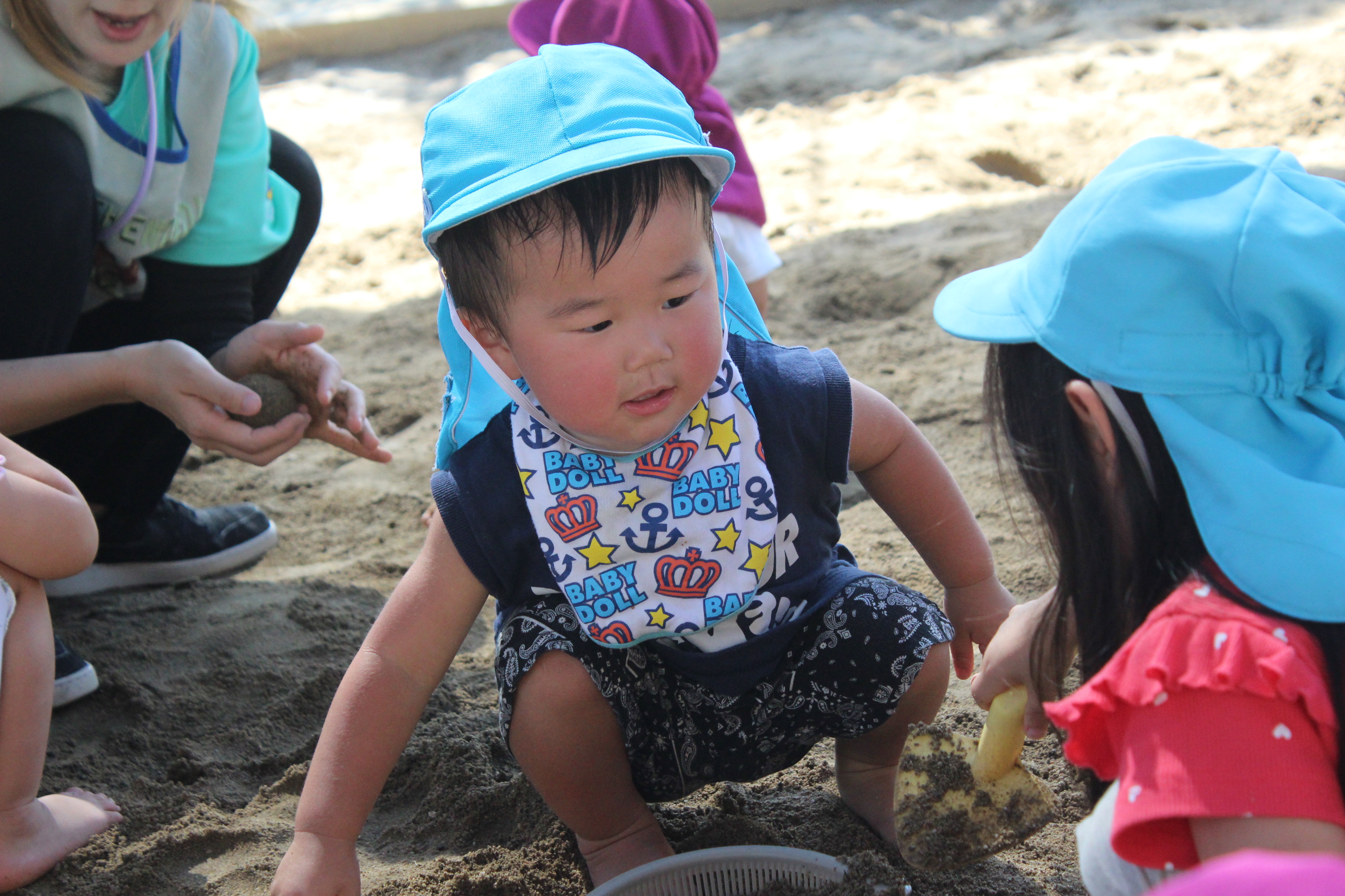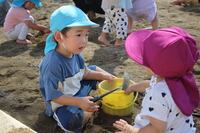 今日は、1歳児たんぽぽ組の砂場遊びの様子をご紹介します。